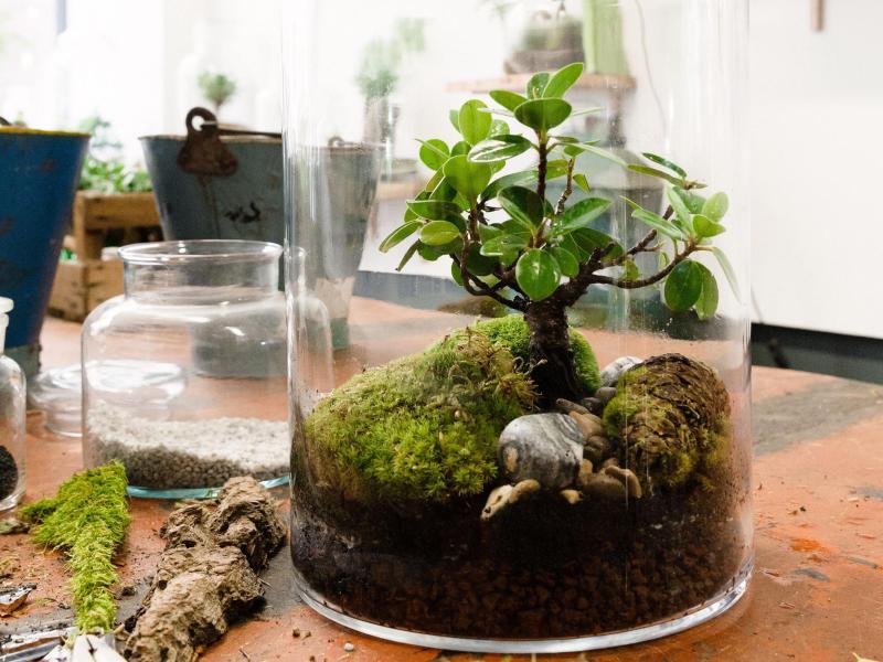 Auch an der arbeitsstelle macht die kleine pflanzenwelt eine gute figur. So einfach lässt sich ein kleines biotop anlegen. Das heißt, diese kleinen gärten im glas sind nicht nur ein absoluter blickfang für deine wohnung, sondern bereiten dir auch so gut wie keine arbeit. Der garten im glas braucht nur wenig pflege. Das ökosystem im glas besteht aus pflanzen, substrat, mikroorganismen, luft und wasser.